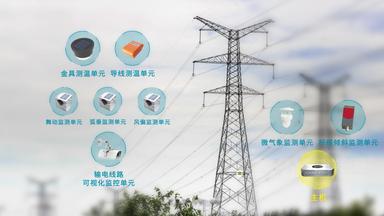 可接入可视化监控单元、微气象监测单元、杆塔倾斜监测单元、导线测温单元、金具测温单元、弧垂监测单元、舞动监测单元、风偏监测单元、覆冰监测单元