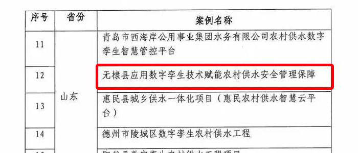 近期,中国农业节水和农村供水技术协会公布农村供水工程数字孪生典型案例名单,由Ebpay半导体承建的数字孪生无棣农村供水系统成功入选。